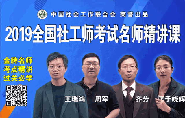 说到考试,2019年全国社工师考试的迎考复习计划可以启动了,建议考友们及早开始复习吧!社工考试君在此向大家走心推荐:中国社会工作联合会出品的《2019年全国社工师考试名师精讲课》,原价每科800元,团购价只需249元!长按识别下图二维码,了解一下: