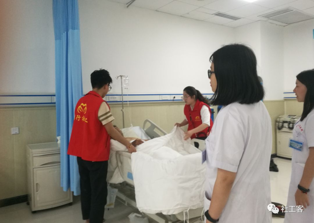 在此期间,社会工作者充当照顾者角色,帮助服务对象买饭、盖被子、调节床位、擦拭嘴内粘液……与此同时,社会工作者联系急诊科主任,向急诊科主任沟通了服务对象目前的困境,希望医院能够帮助服务对象开通绿色通道。主任了解情况后,告知社会工作者会尽可能的减免医疗费用并开通绿色通道。